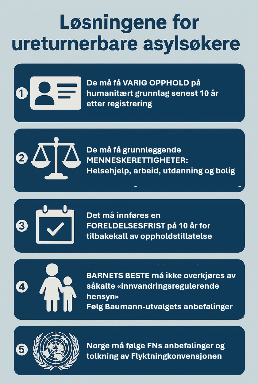 NEI. Dette betyr ikke en åpen dør inn til Norge. Det er svært få mennesker som faller mellom alle stoler og verken kan returnere frivillig eller med tvang. De ureturnerbare er unntakene som bekrefter reglene. Ordningene for asyl, arbeidsinnvandring, studieinnvandring og familieinnvandring er i hovedsak uavhengige av disse unntaksløsningene, både i tall og i årsakssammenhenger.